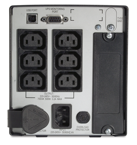 APC Smart-UPS, 500 W / 750 VA,Input 230V / Output 230V, Interface Port DB-9 RS-232, USB, SmartSlot